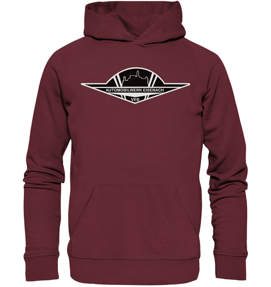 DDR Ostalgie Kapuze / Organic Hoodie Unisex • AUTOMOBILWERK EISENACH - monochrom
