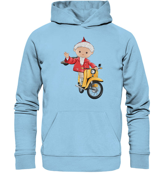 DDR Ostalgie Kapuze / Organic Hoodie Unisex • UNSER SANDMÄNNCHEN - AUF DER SCHWALBE - ROT (PU-137, 1973)