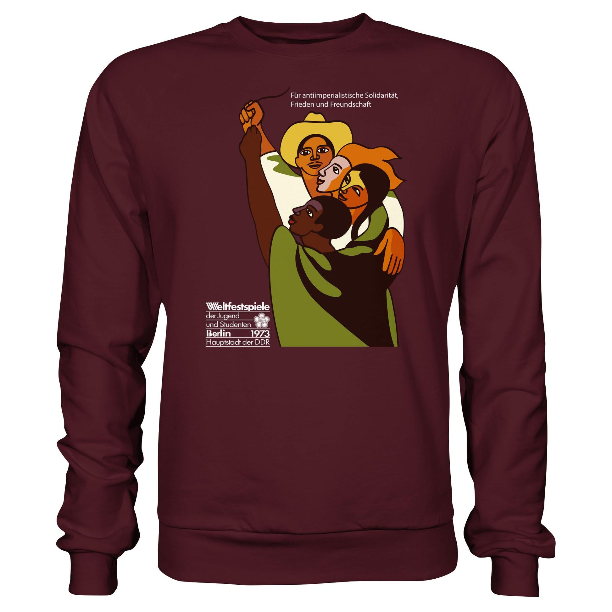 DDR Ostalgie Pullover Unisex • FÜR FRIEDEN UND FREUNDSCHAFT - ORIGINALPOSTER WELTFESTSPIELE BERLIN 1973