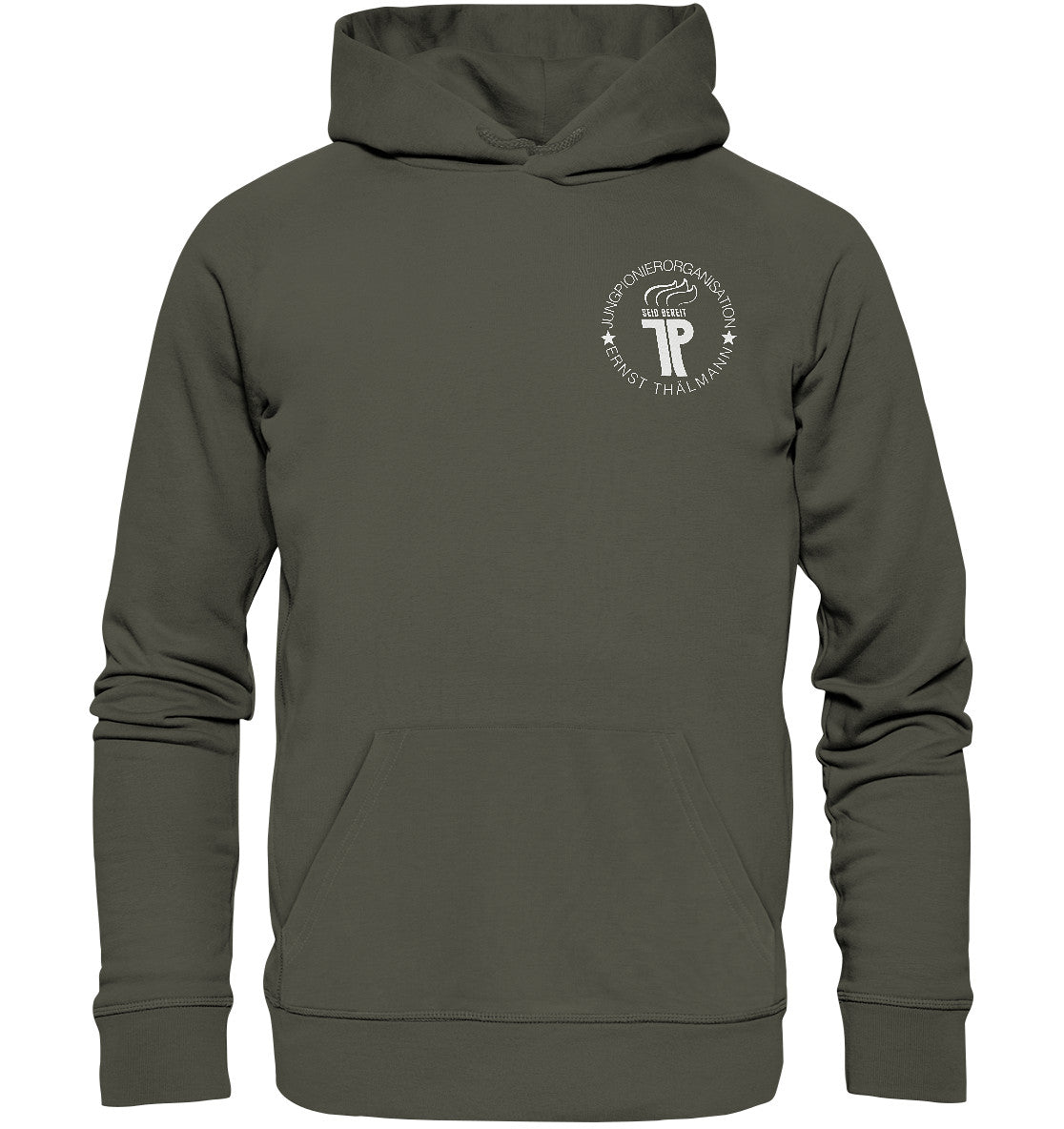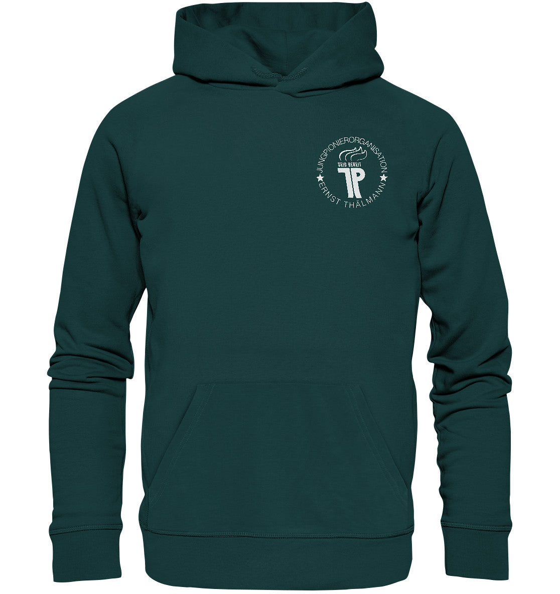DDR Ostalgie Kapuze / Organic Hoodie Unisex • JUNGE PIONIERE - BRUST BADGE dunkel