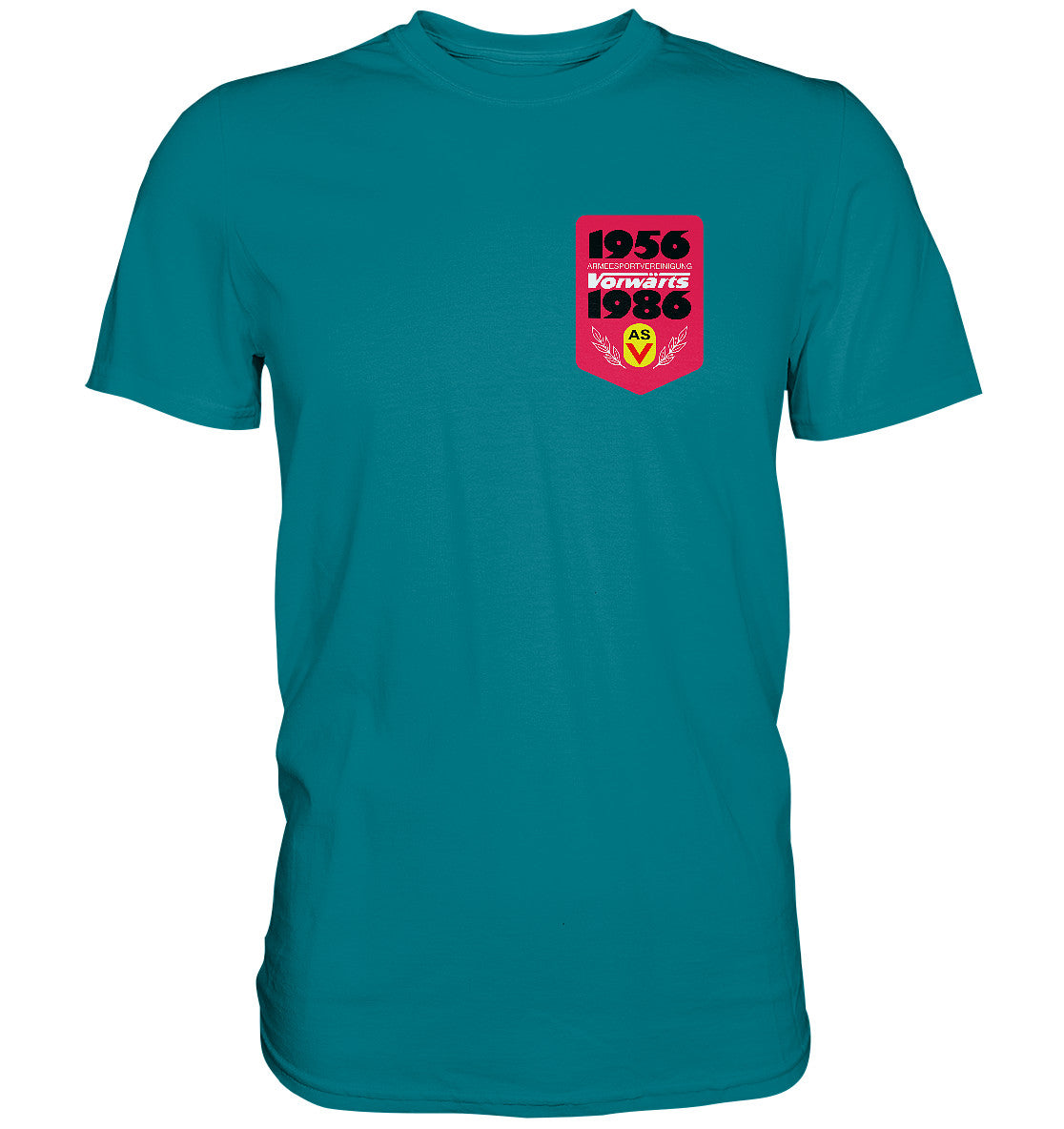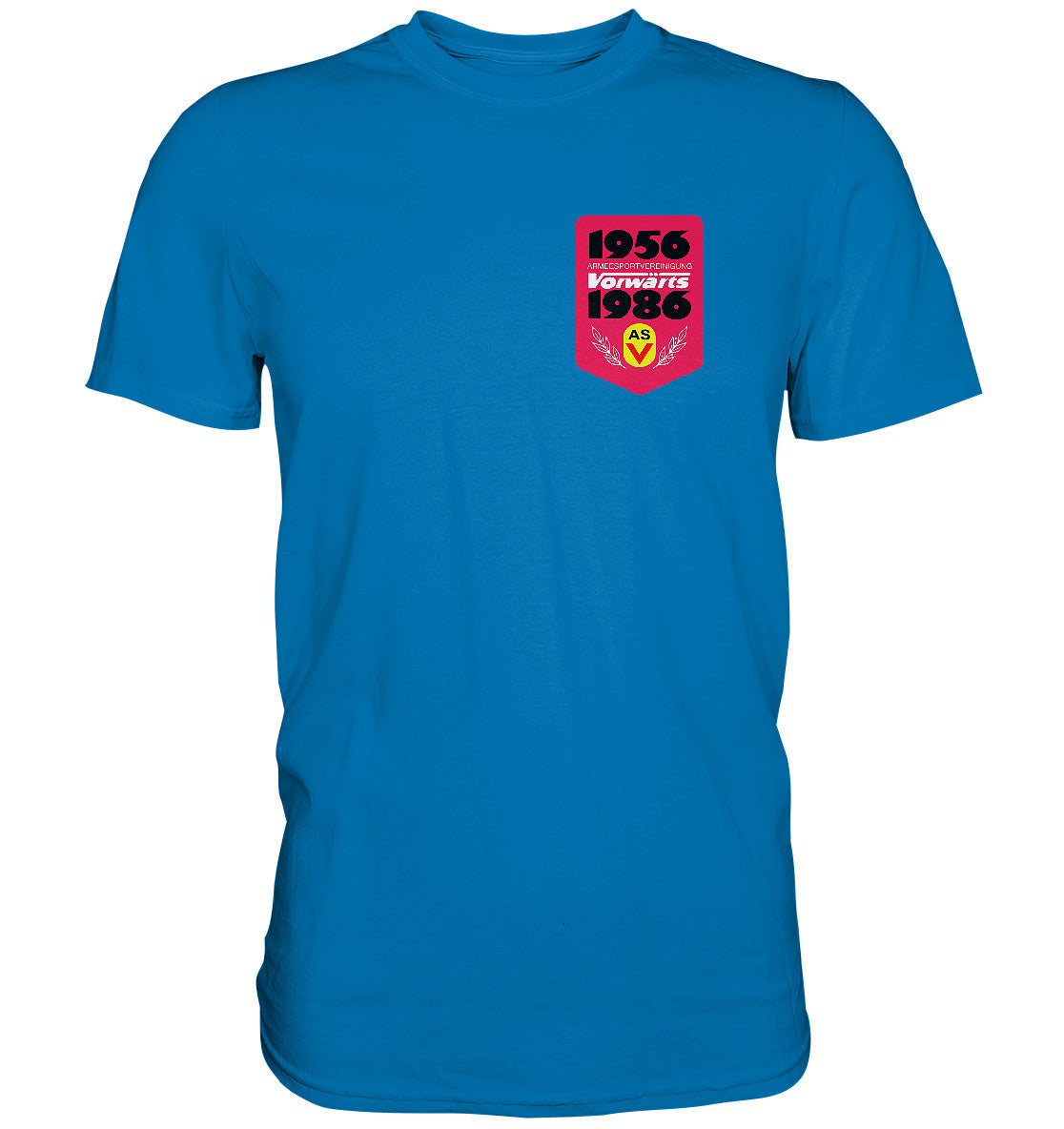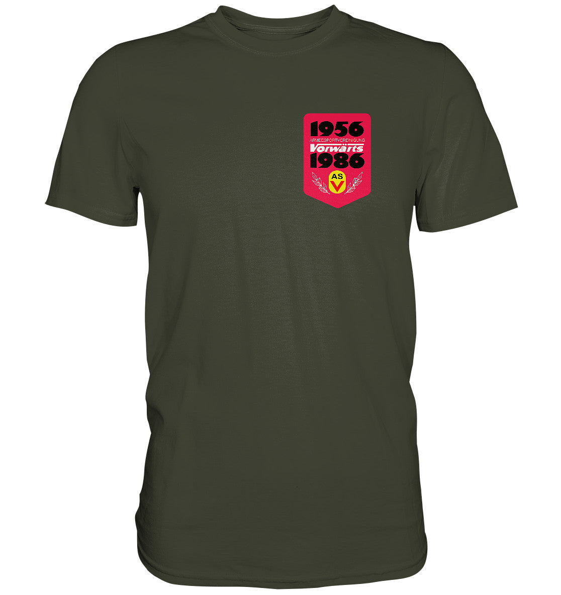 DDR Ostalgie Shirt Unisex • ARMEESPORTVEREINIGUNG VORWÄRTS 1956-1986, BRUST BADGE